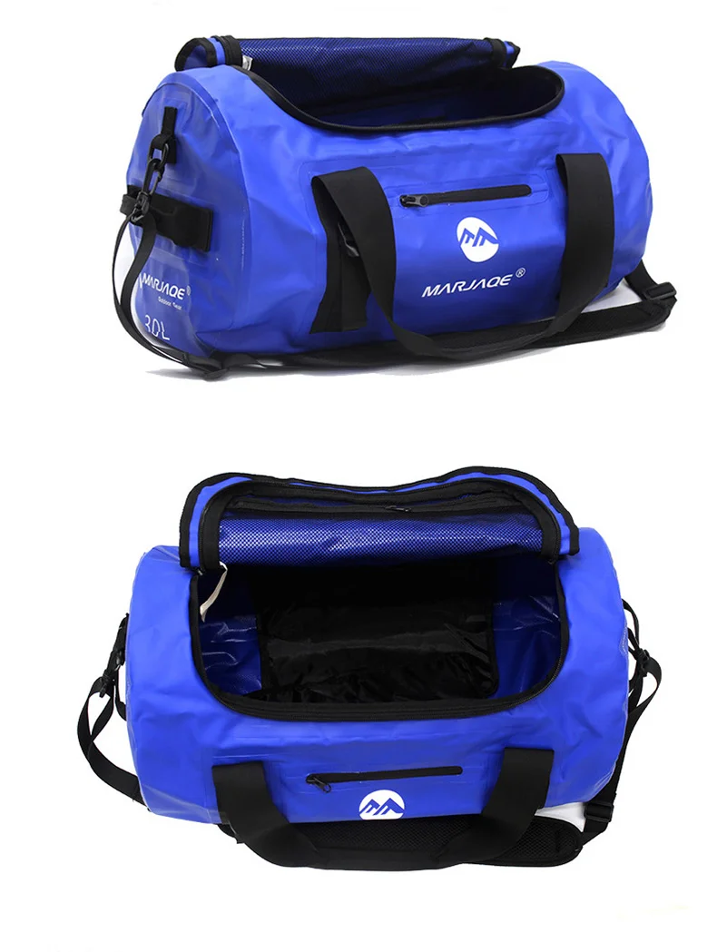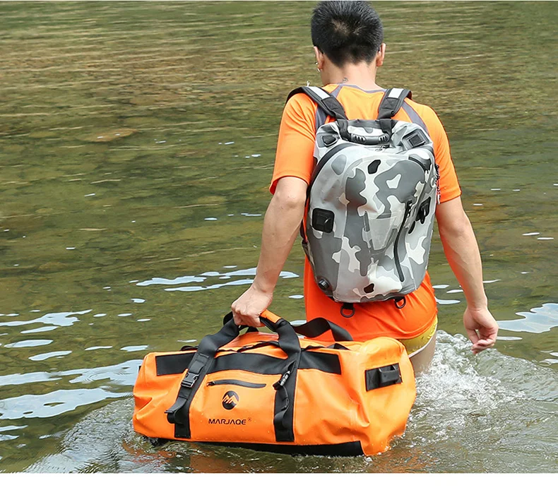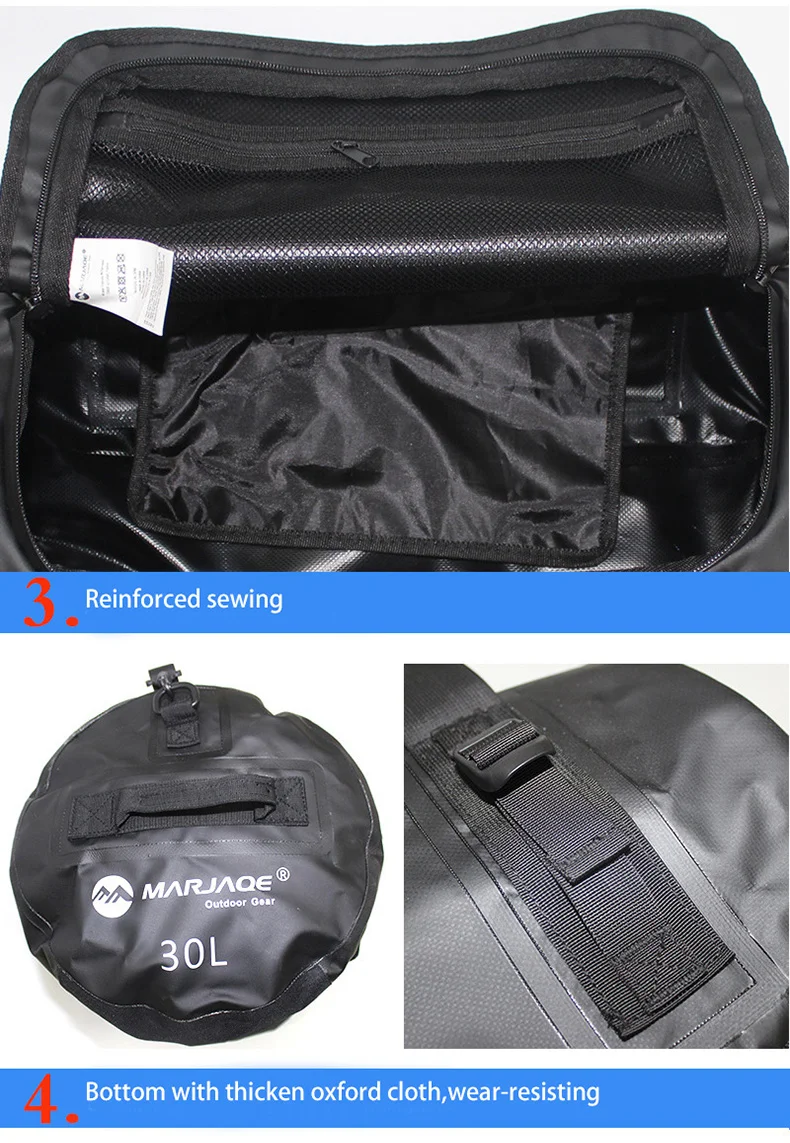 500D waterproof guarantee: applied 500D PVC high-frequency welded seams material, 30L newly dry bag backpack has strong waterproof, dust proof and tear proof performing. Water drop design of outer pouch makes this dry bag novel and special. The dry backpack is double reinforced at all the major pressure points so that it's durable enough and wear-resistant. Would absolutely be your ideal choice for any water environment you may encounter!