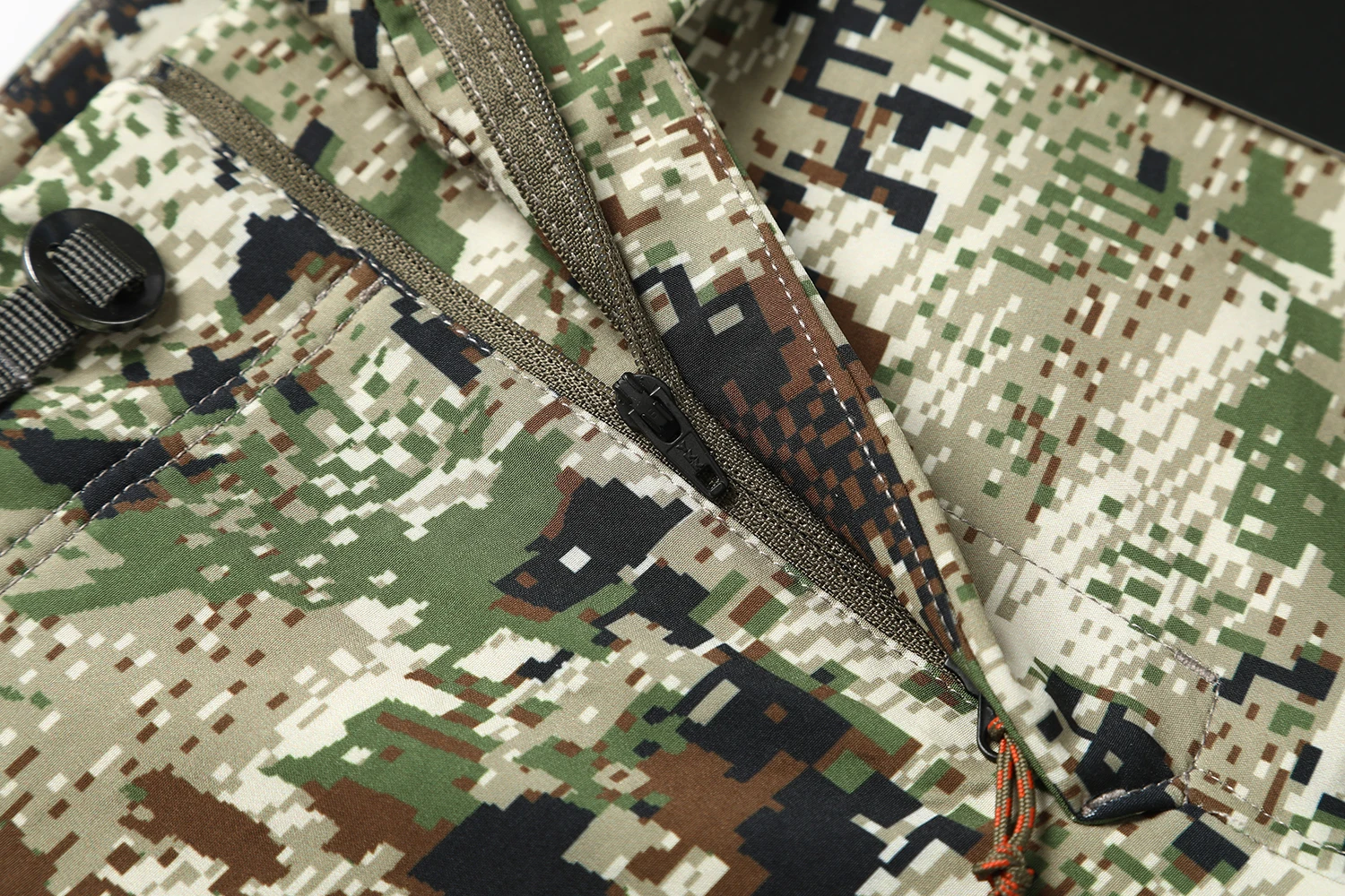 AINFAD GEAR APEX pants The Apex pants are designed to be the ultimate spot and stealth archery hunting pants. The soft micromesh wool interior achieves a balance between warmth and breathability at different levels of activity, while the bonded polyester surface provides durability. Detachable knee pads and large interior pockets add comfort and functionality to an already stealthy pair of pants, from early season to fall hunting. When designing the Apex system, we focused on scent, sight, and sound: the three enemies of the discerning bow hunter. Apex pants are designed to eliminate unwanted noise by utilizing ultra-quiet facial fabrics and eliminating excess material between your feet. Add technical features like an internal mesh storage bag that keeps your must-have gear - rangefinder, wind check, release - from shaking around, and integrated knee pads keep you comfortable and focused on the method.