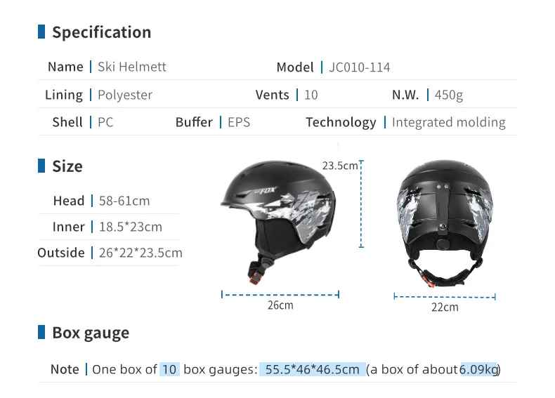 BATFOX Ski Helmet Snowboard Skiing Skateboard Skating Winter Men Women Outdoor S
