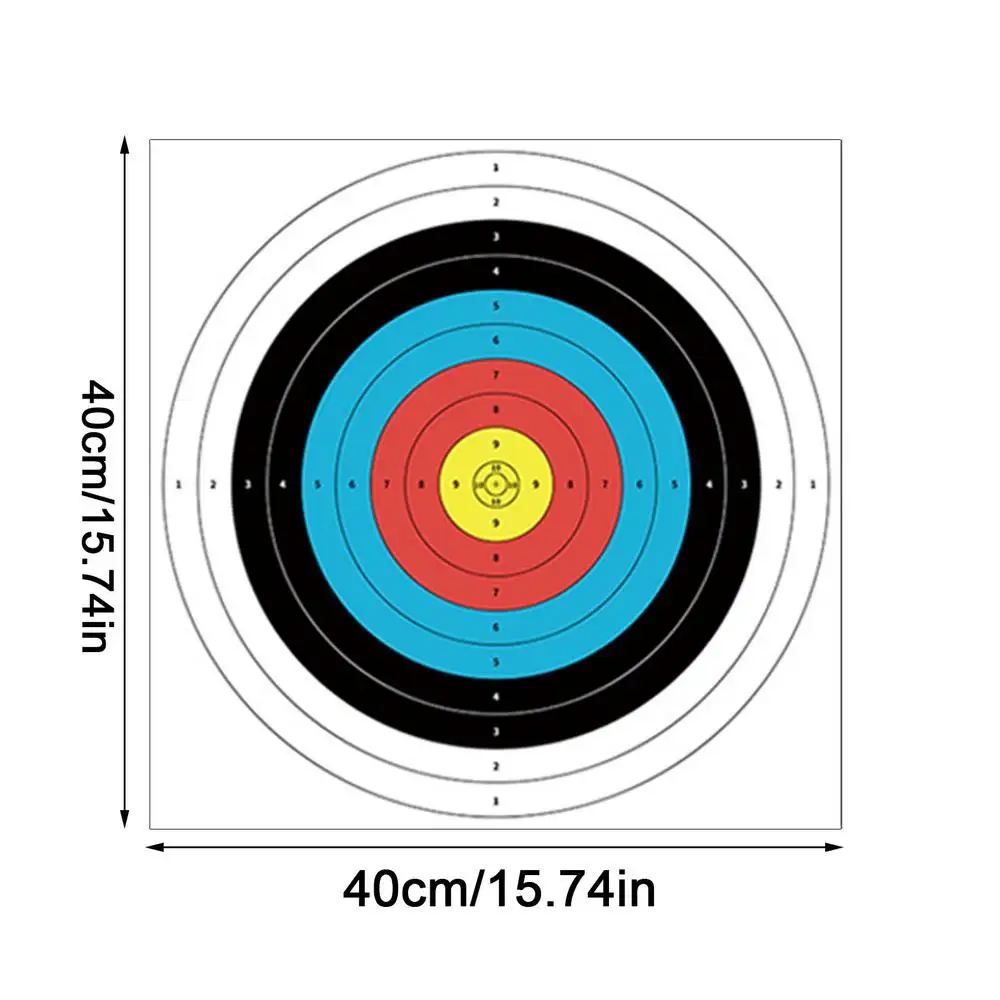 Product Size: Full ring/half ring target paper - 40x40cm/15.74x15.74in, weight: about 18g/sheet; 10-ring target center diameter 4cm/1.57in, other ring target center diameter 2cm/0.78in