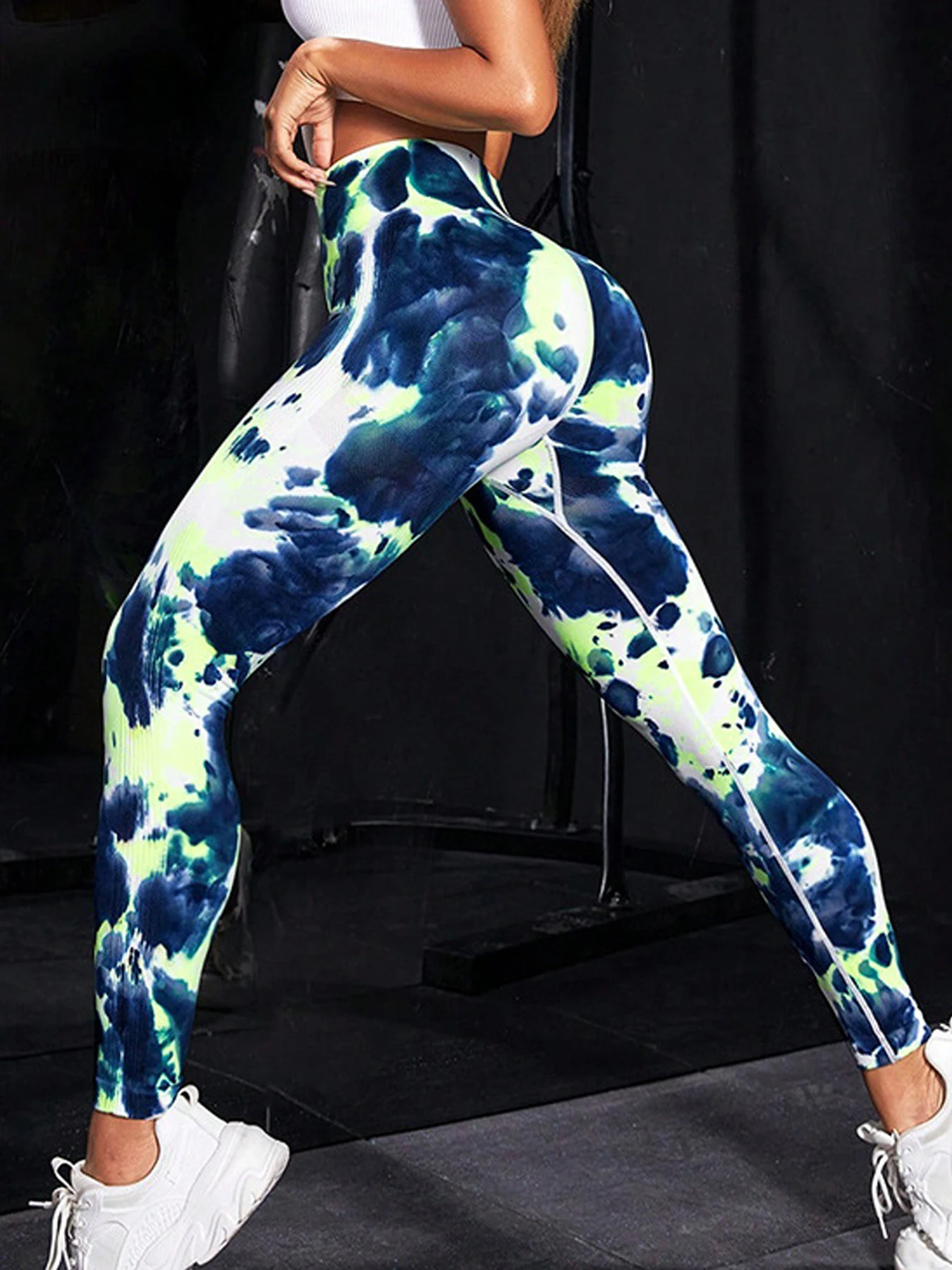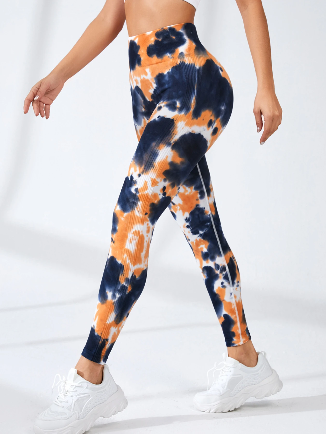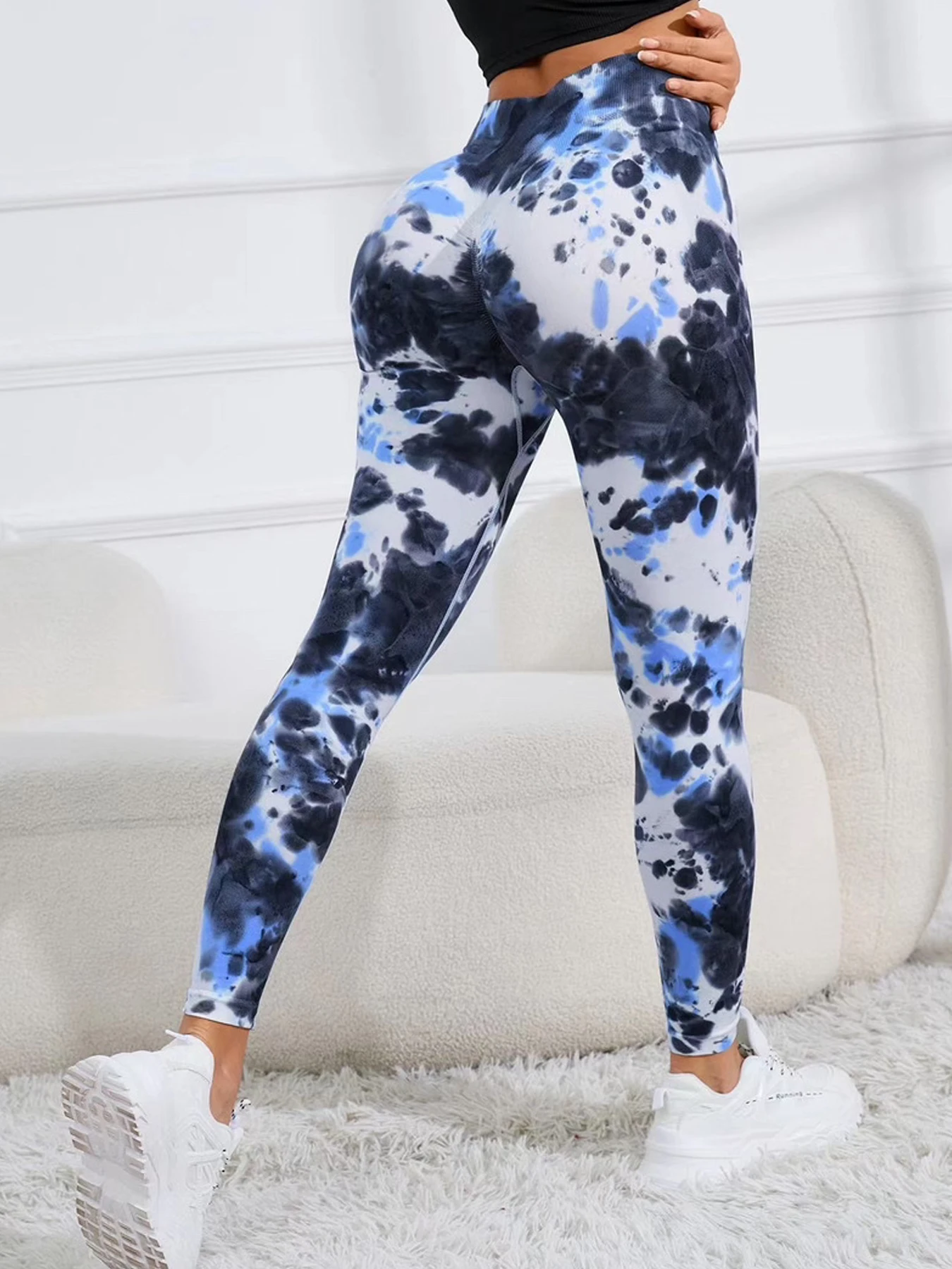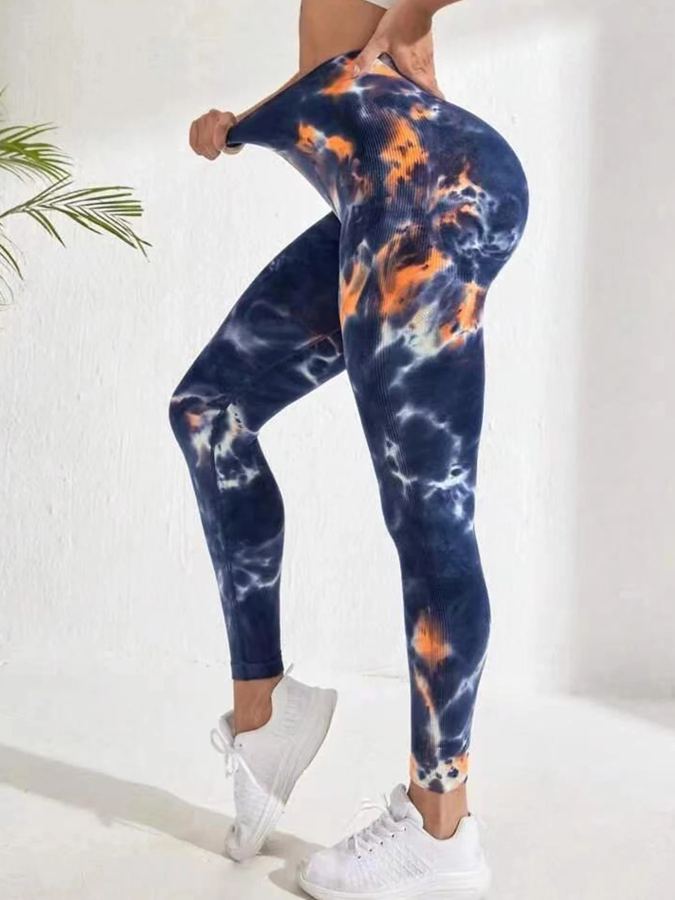 Fashion Tie Dye Print Seamless Yoga Leggings For Women High Waisted Push Up Work