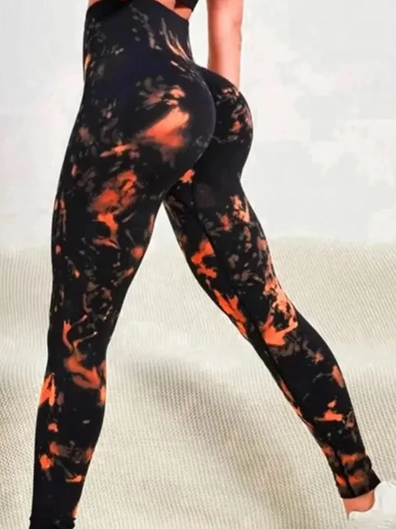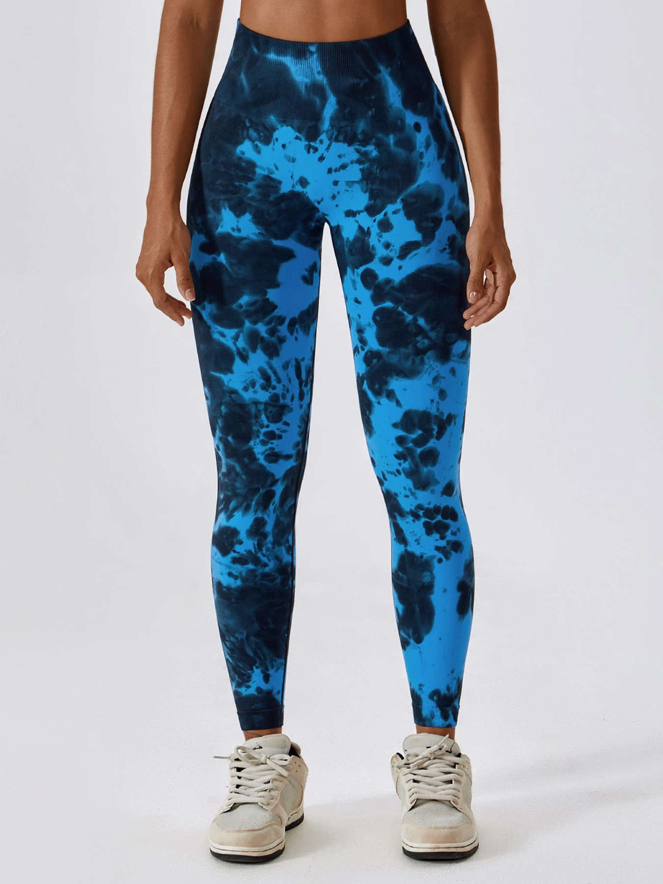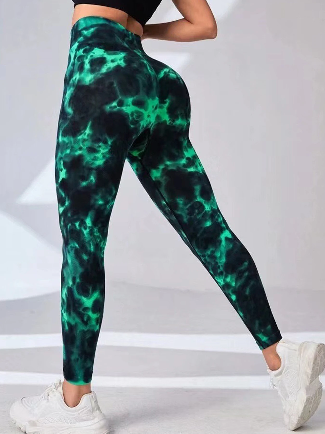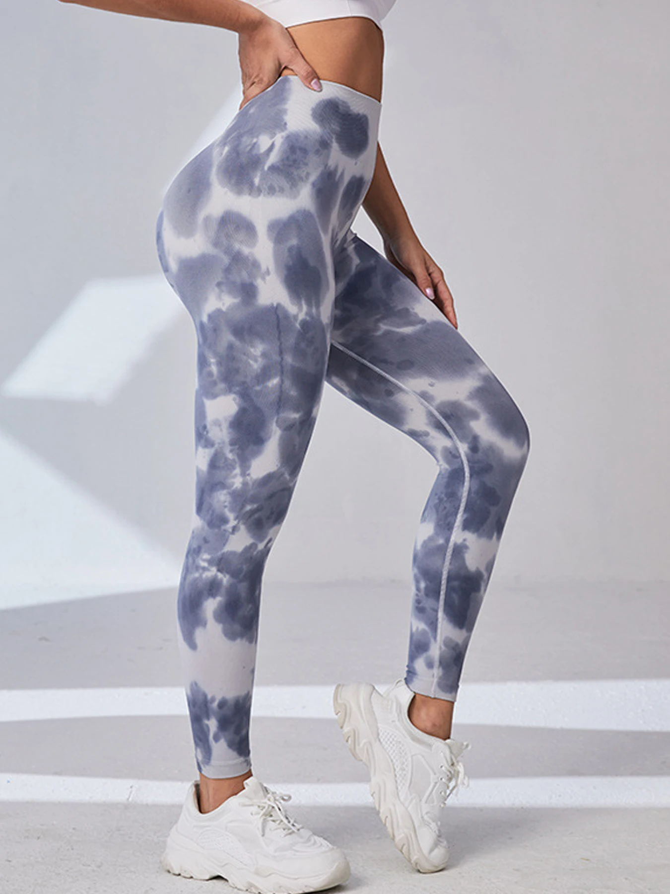 Fashion Tie Dye Print Seamless Yoga Leggings For Women High Waisted Push Up Work