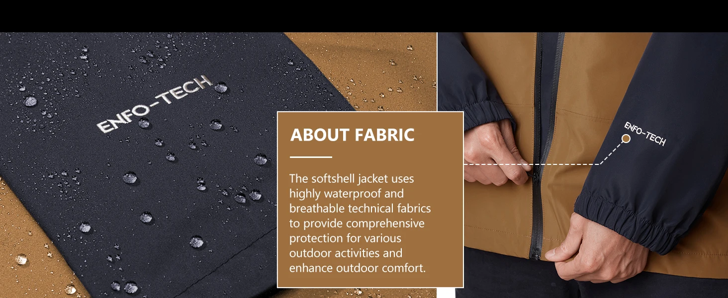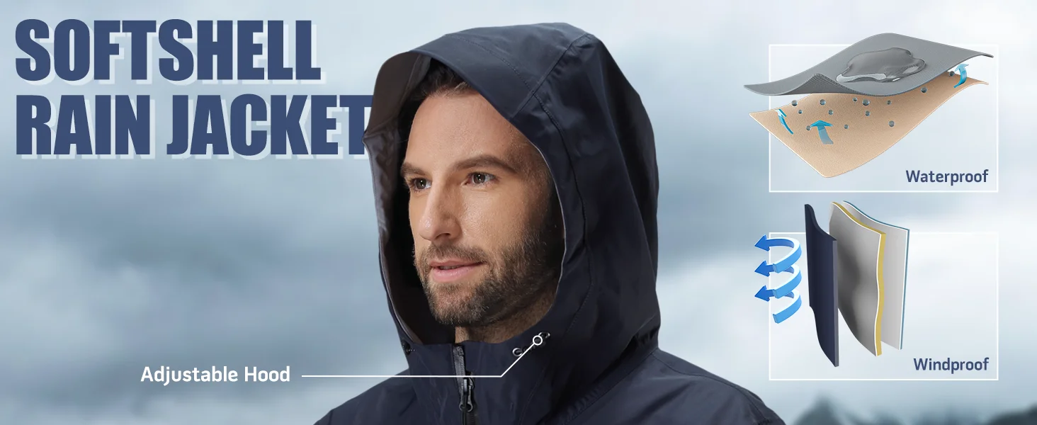 TECHNOLOGY: Featuring a high-tech, water-resistant shell, our softshell rain jacket excels in windproof and waterproof performance, keeping you dry in overcast and rainy conditions during various outdoor activities.