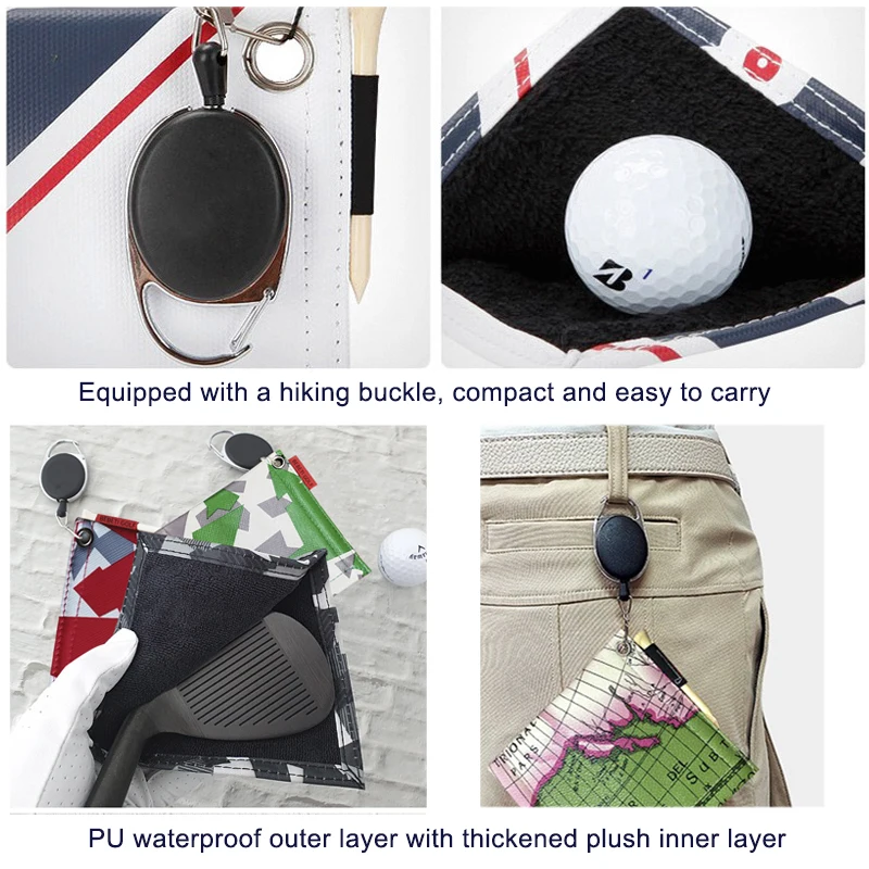 Golf Towel Golf Club Cleaner With Hook Or Mountaineering Buckle Hand Towel Multiple Style Choices Portable Golf Cleaning Tools