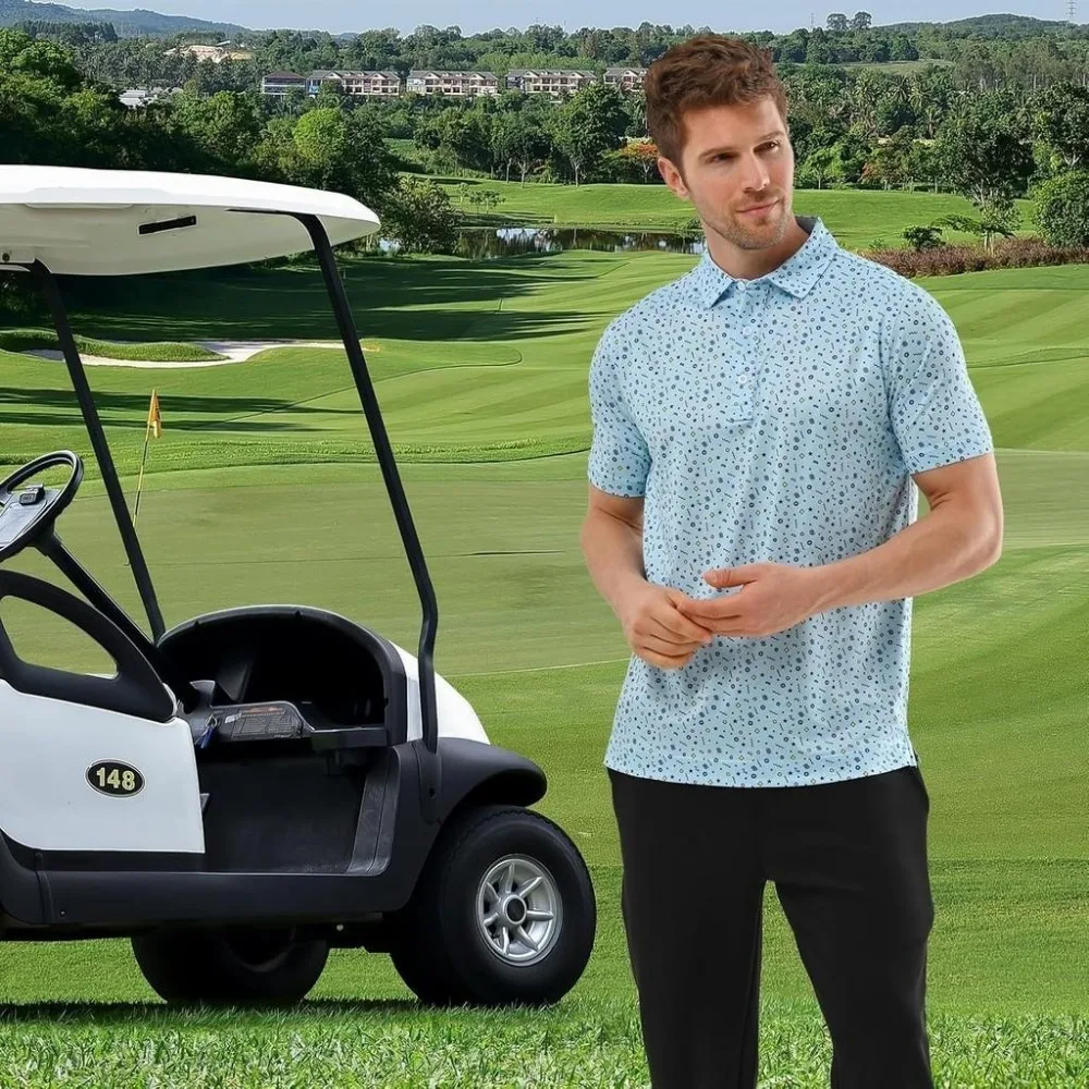 High End Men Golf Polo Shirt Short Sleeve Moisture Wicking Fashion Men's Casual