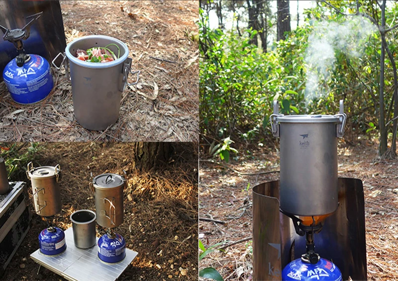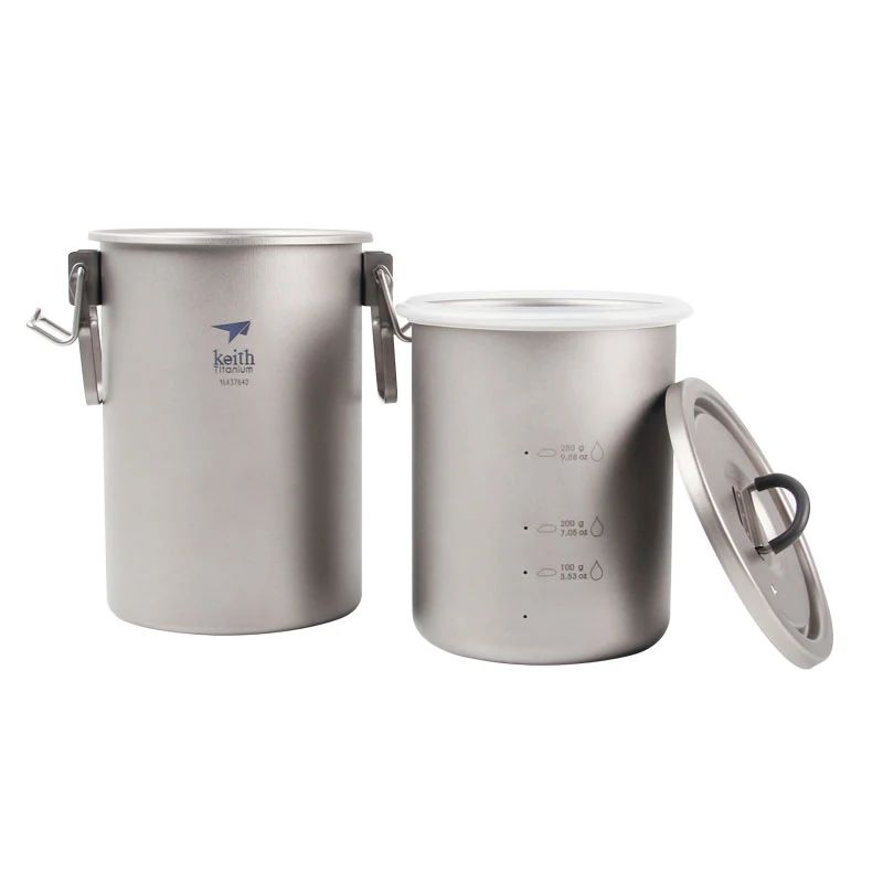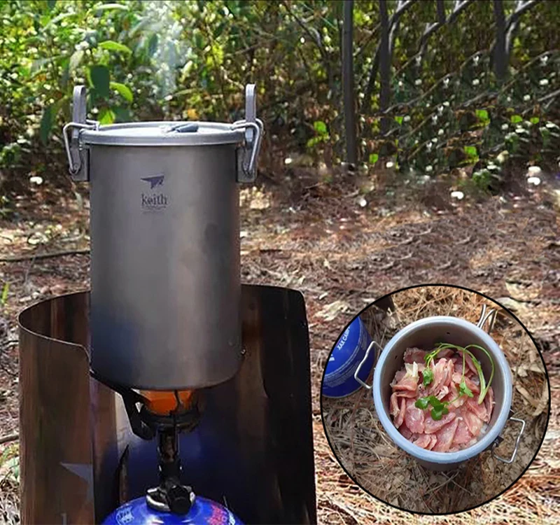 Keith Titanium Rice Steamer 900ml, Camping Kitchen Cookware Set Titanium Pot, Fo