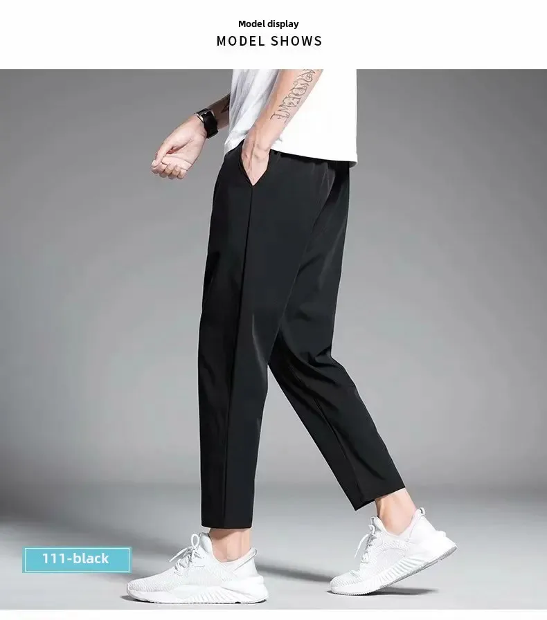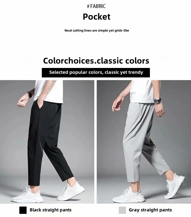 • Ice Silk Material :Crafted from premium ice silk material, these pants offer a cool and comfortable wear, perfect for summer.