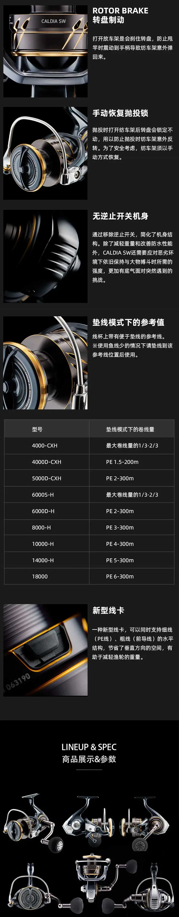 NEW Original DAIWA CALDIA SW Saltwater Spinning Fishing Reel 4000-CXH 5000 6000