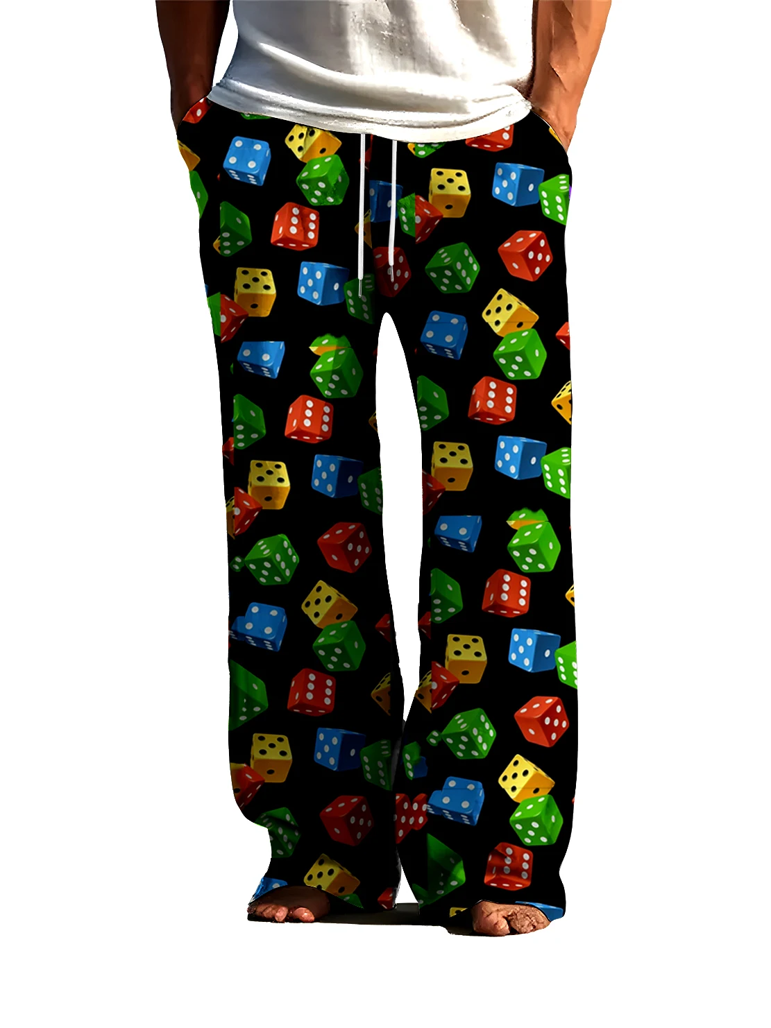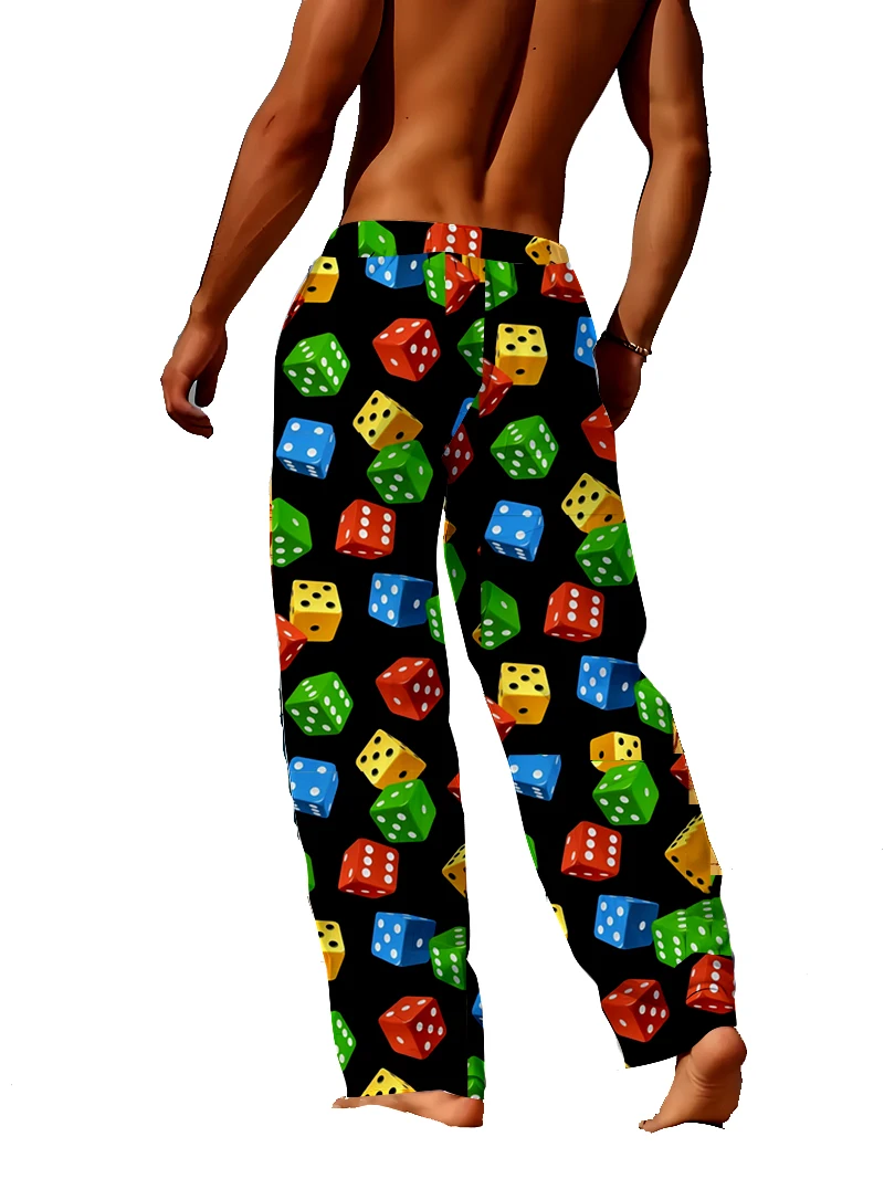 New Skin Friendly ice Silk asual men's Sleeping Pants Home 3D Printed Pants Dice