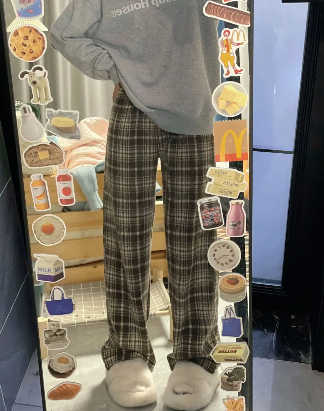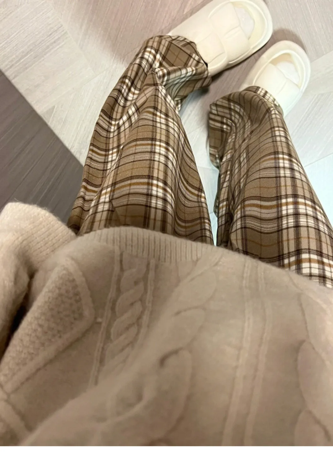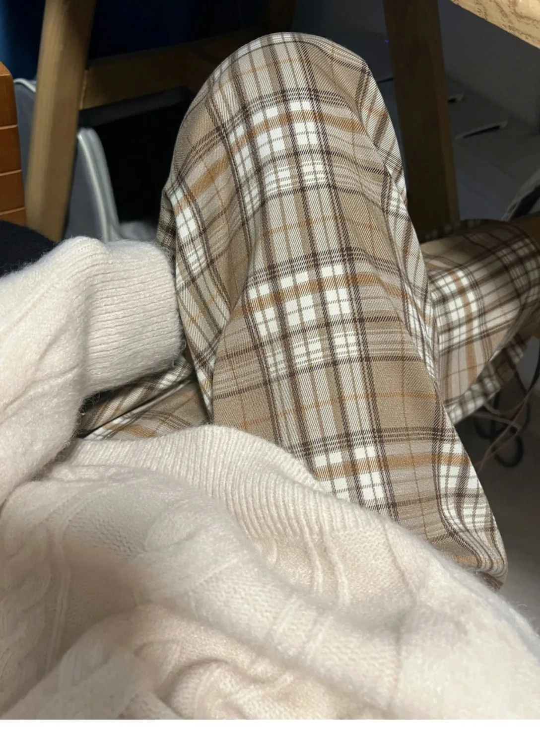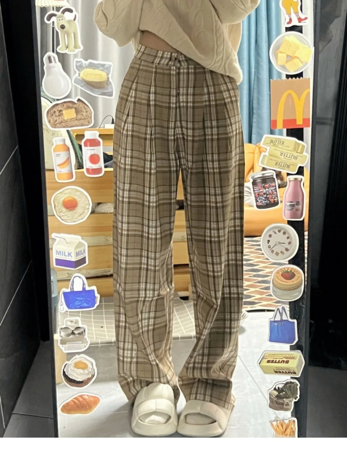 Pants Women Summer Simple Plaid Leisure Loose All-match Straight Daily High Wais