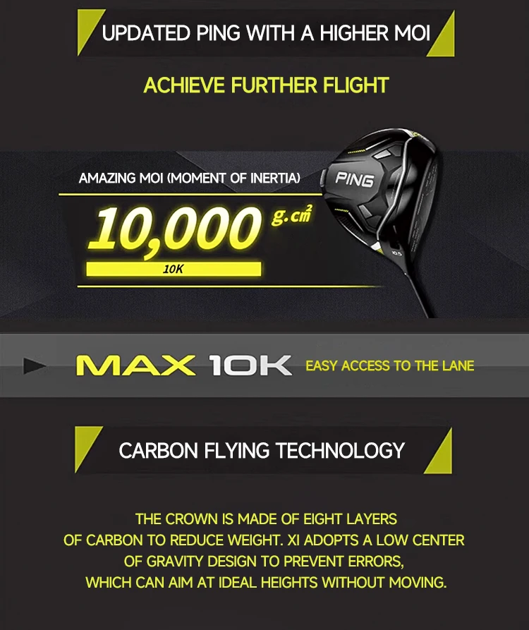 MOI value: 10,000g·cm², which is currently one of the highest MOI values for No.1 wood on the market.