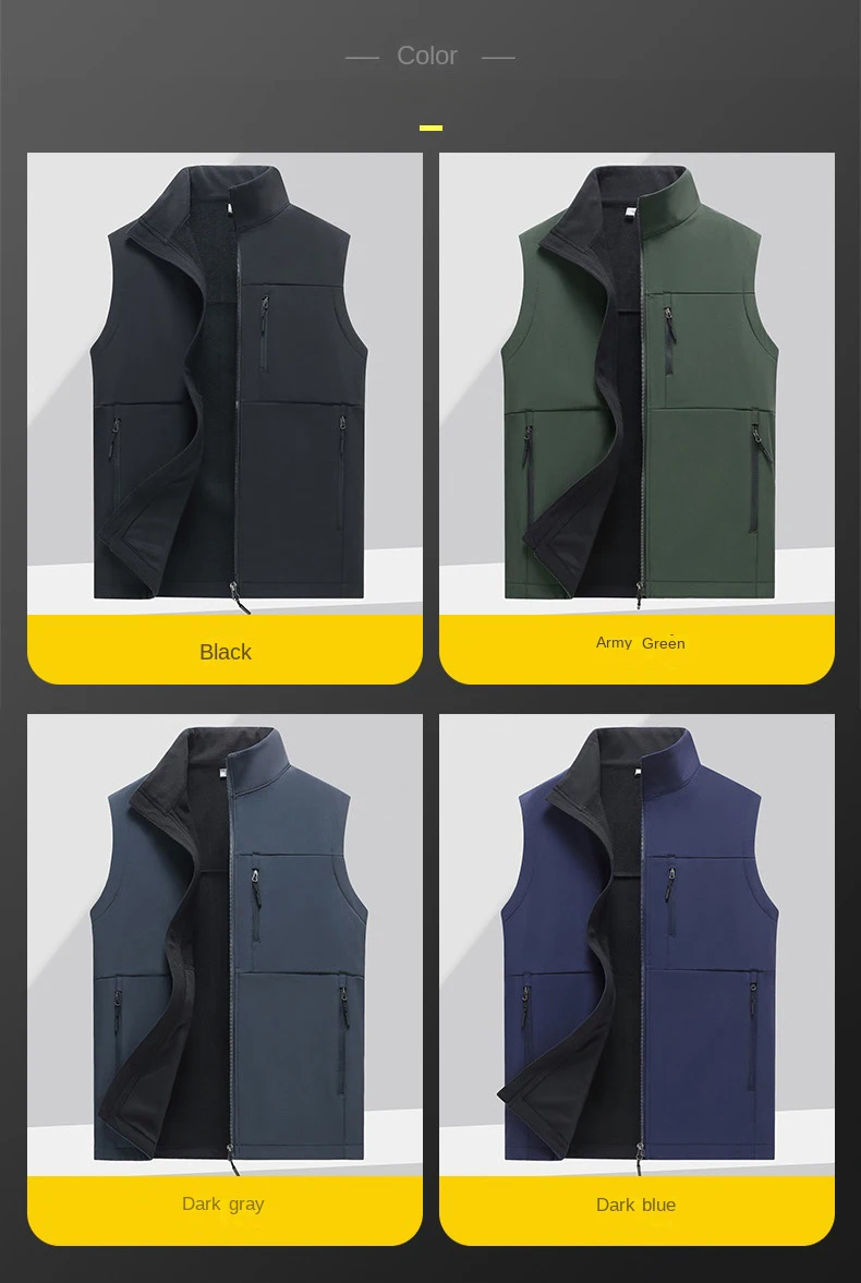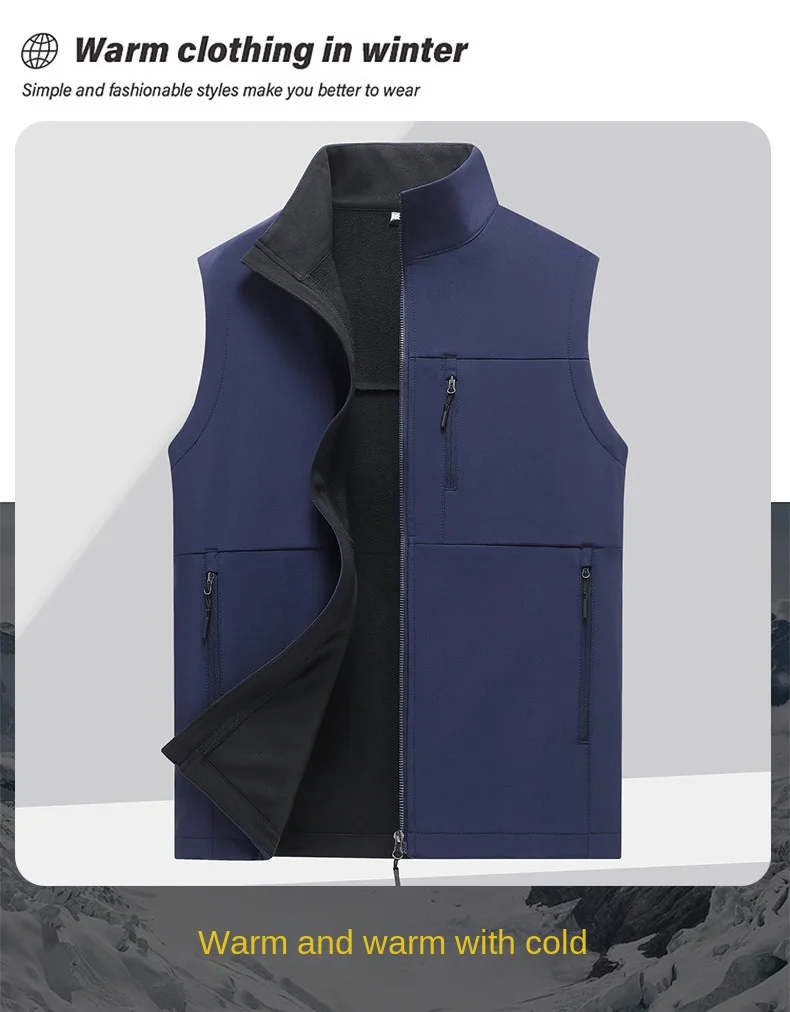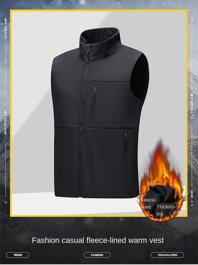 Soft shell thick vest men's autumn and winter work clothes plush jacket waterpro