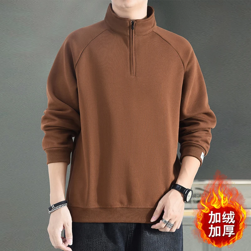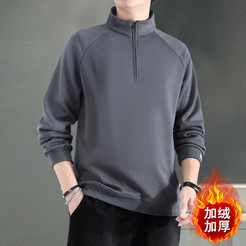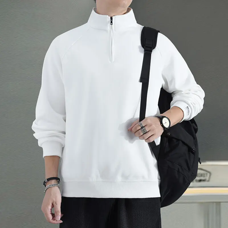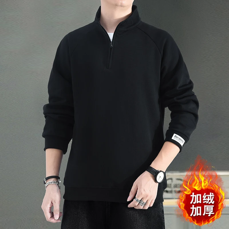 Trend Fashion Autumn Winter New Men Solid Half Zipper Korean Casual Long Sleeve
